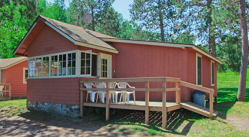 Handicapped Accessible. Three bedroom cabin with 1 queen, 2 double beds, single bed plus hide-a-bed. Full-view living area. Large deck overlooking lake. Tub & shower. Rate based on 6, max occupancy 8.